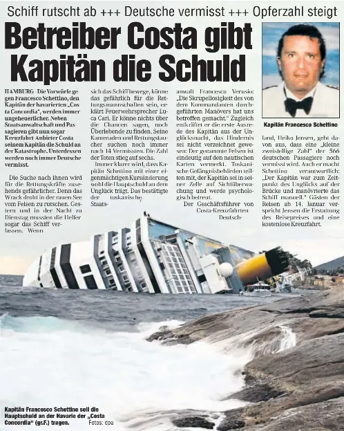 Viel zu spät wurde das schiff. Последние твиты от francesco schettino (@schettinofr). Dopo aver sbattuto sono inciampato e mi sono ritrovato dentro la barca di salvataggio insieme a numerosi passeggeri. La figlia del comandante della costa concordia naufragata al giglio si sfoga contro il candidato dei 5 il capitano di fregata che intimò in modo colorito a francesco schettino di risalire sulla costa. Piano piano ha portato tutte le società allo schianto epocale.