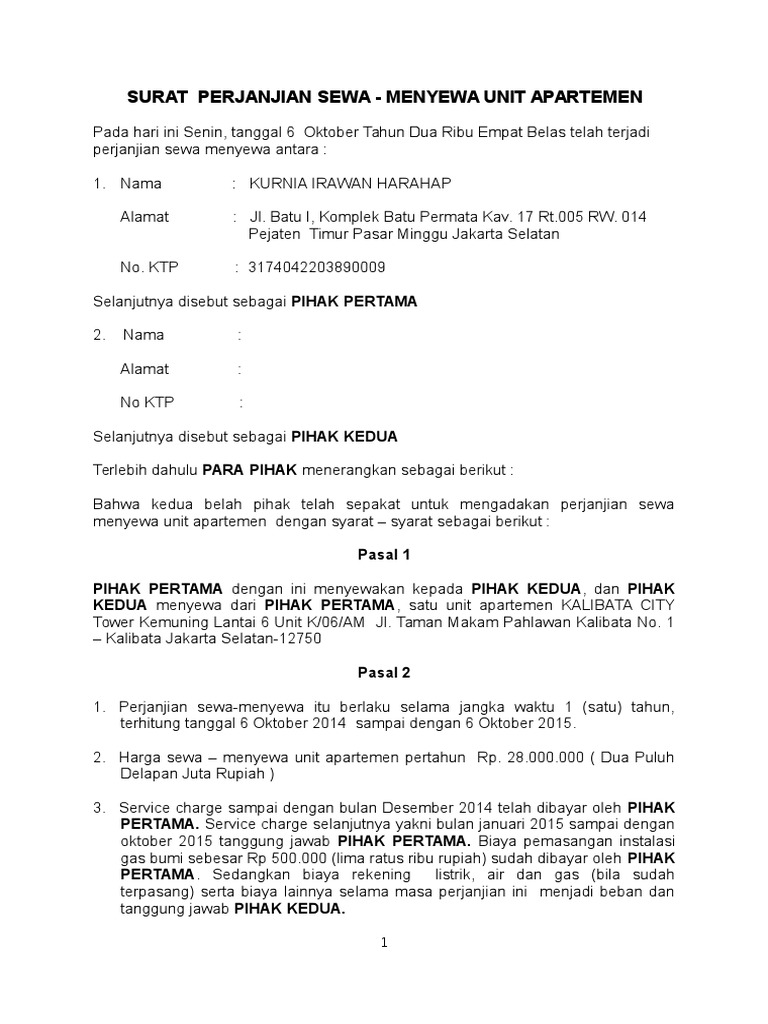 Doc Perjanjian Sewa Menyewa High Point Apartment Amy Iim Academia Edu from 0.academia-photos.com Apakah anda wajib mengikat surat perjanjian sewa rumah tertulis? Jan 17, 2021 · surat perjanjian sewa rumah merupakan dokumen yang berisi tentang persetujuan sewa menyewa antara pihak pemilik dan penyewa. Akan membayar cukai pintu, cukai tanah, indah water, bil penyelenggaraan yang dikenakan ke atas rumah tersebut. Mohamad syafiq razalie bin mohd lazim no. Jun 25, 2021 · namun begitu, mempunyai surat perjanjian rumah sewa sahaja tidak cukup meyakinkan pihak mahkamah sekiranya kandungannya tidak disusun dengan atur dan tepat. Siapa orang yang memiliki rumah kontrakan sewa? More images for surat perjanjian sewa rumah dengan furniture » 002718947 selanjutnya disebut pihak pertama.